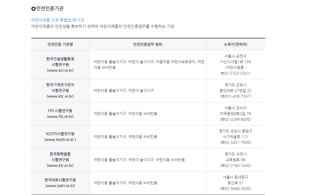 안전 특별법 제15조어린이제품의 안전성을 확보하기 위하여 어린이제품의 안전인증업무를 수행하는 기관