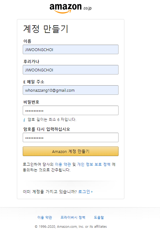 2.일본 아마존 홈페이지 가입하기
