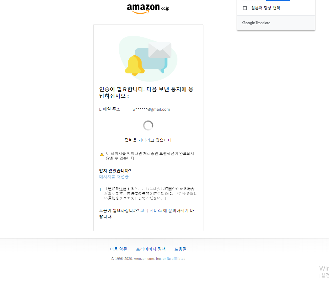 아마존에서 날라온 인증번호를 복사하여 붙여넣기 해주시면 됩니다.
