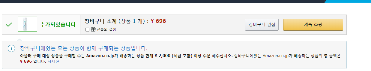 일본도 똑같이 일정 구매 금액이 넘어가면 관부가세를 내야하기때문에