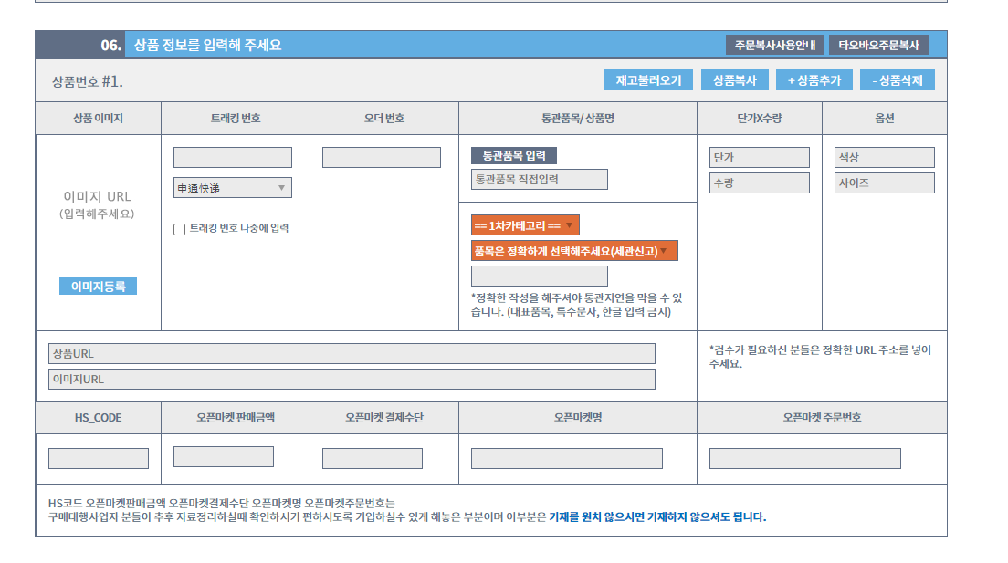 이 주문복사를 통해서 간편하게 물건을 등록하실수 있습니다.