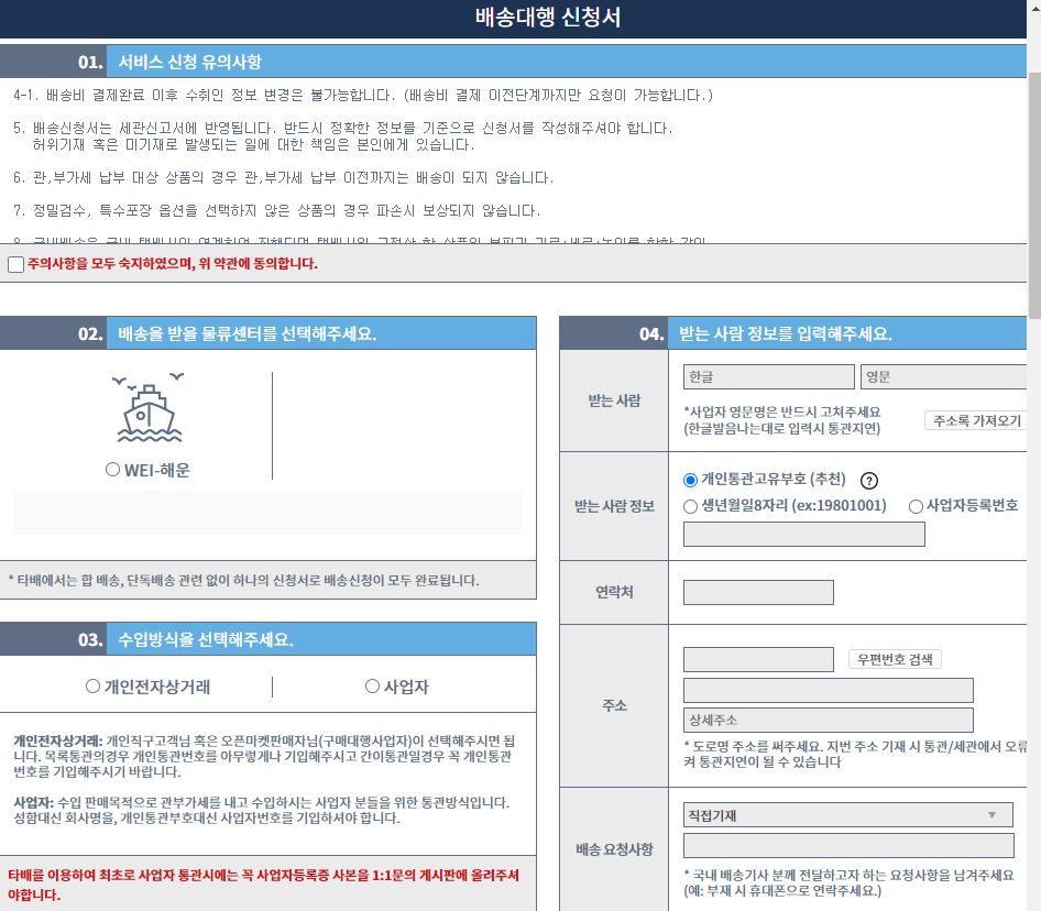 그래서 신용카드가 되는 배송대행지를 사용하시는게 좋습니다.
