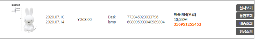 저는 저 제품을 샘플로 주문했던것이라 배송완료가 떠있는데요.
